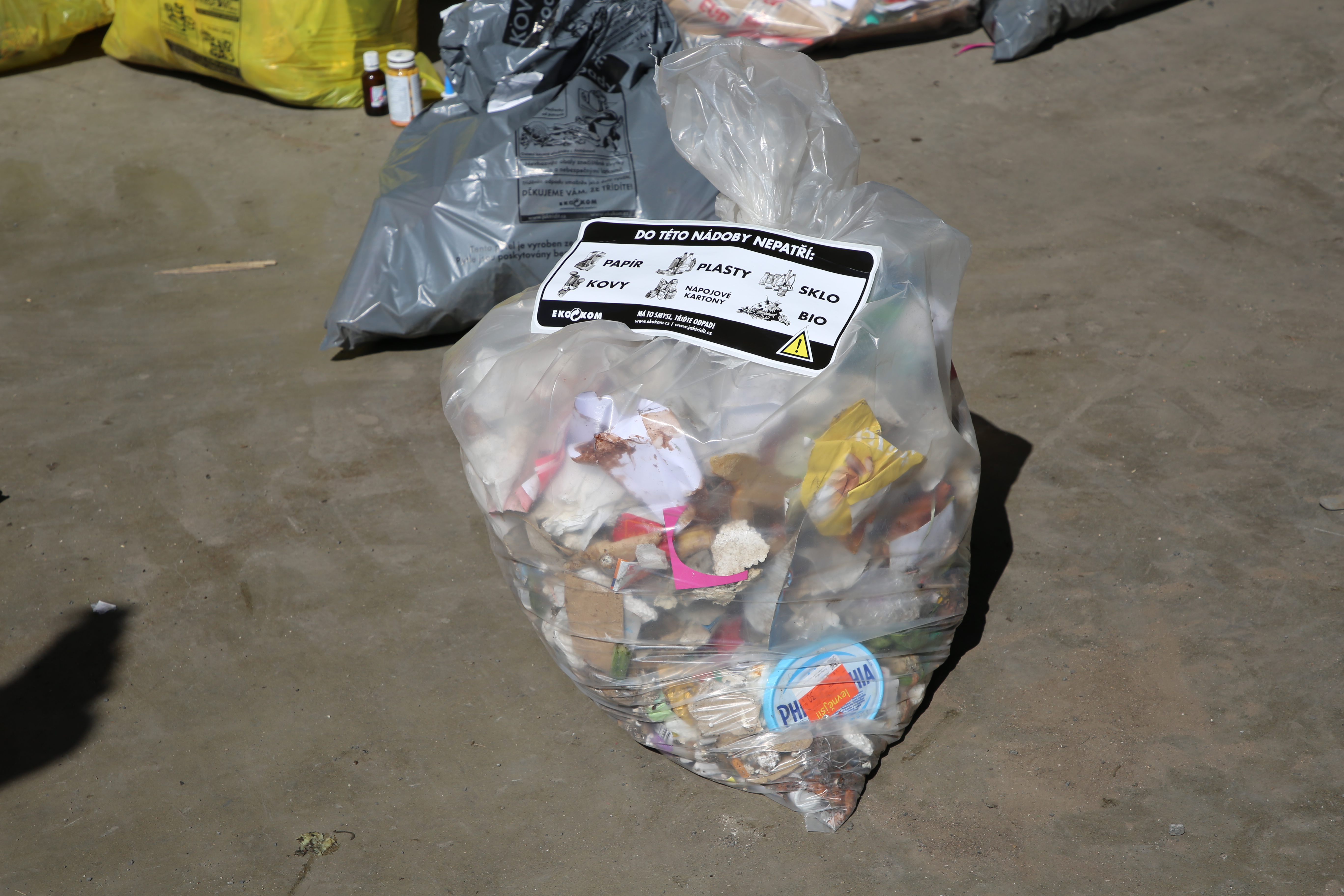 Veškerý obsah kontejnerů vysypali a v průběhu dopoledne kompletně přetřídili. Při dodržení zásad zodpovědného nakládání s odpady toho opravdu nevytřiditelného odpadu na jeden kontejner zbyl pouhý jeden průhledný pytel. A to je v poměru k množství plastu, papíru, hliníku i dalšího materiálu opravdu velice málo!