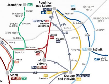 Linka 596 Pražské integrované dopravy od Velvarského nádraží do obce Loucká pojede 4x denně nově až do Straškova k nádraží, kde na ni naváže vlaková linka U21 do Roudnice. I zde bude platit tarif PID i DUK.