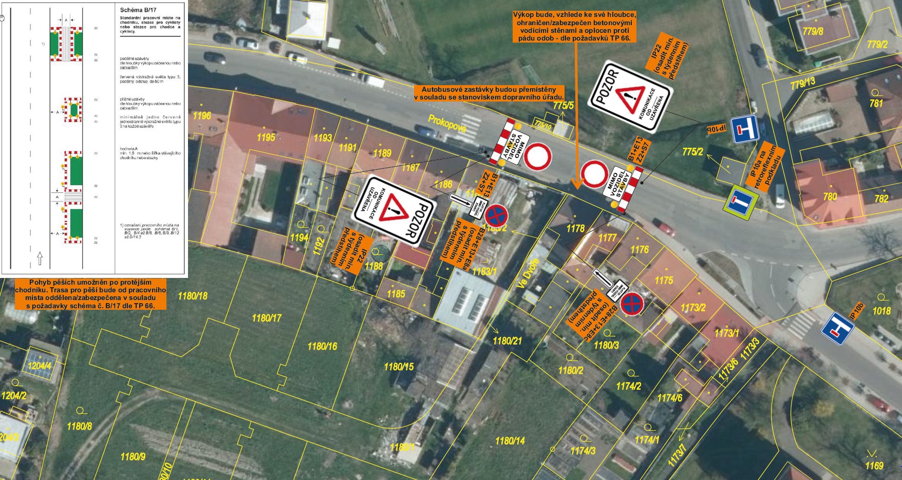 Při pohybu v blízkosti stavby prosím dbejte osobní bezpečnosti. Dopravní značení je umisťováno s týdenním předstihem a vlastní práce zhotovitel zahájí hned příští pondělí. Děkujeme za pochopení.