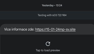 Česká správa sociálního zabezpečení (ČSSZ) upozorňuje na podvodné telefonáty, které jejím jménem vyzývají k návštěvě podvodných webů. Telefonáty odkazují na následně zaslanou falešnou SMS, která vyzývá k návštěvě údajného webu ČSSZ. Jedná se o kombinaci podvodných technik vishing a smishing.